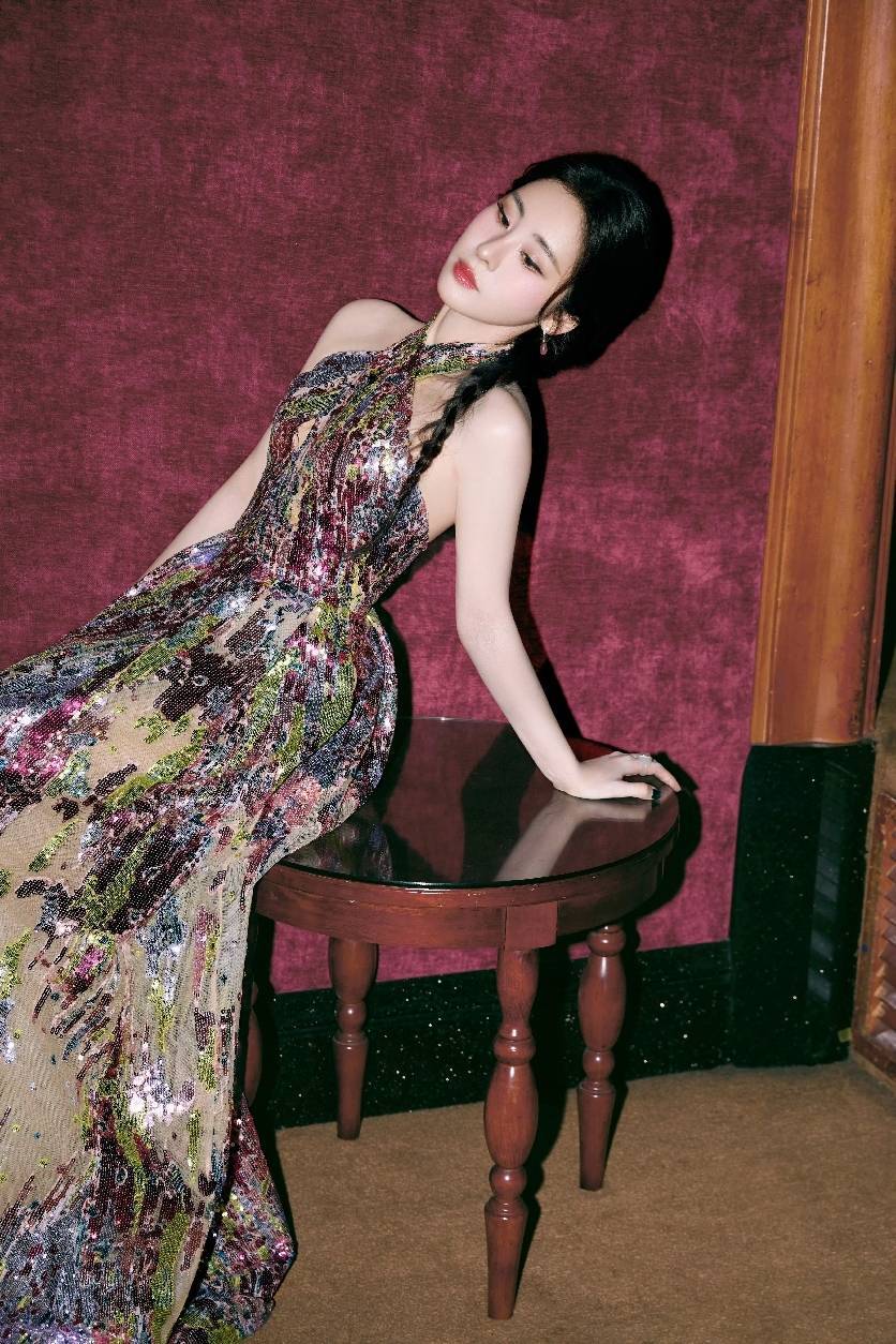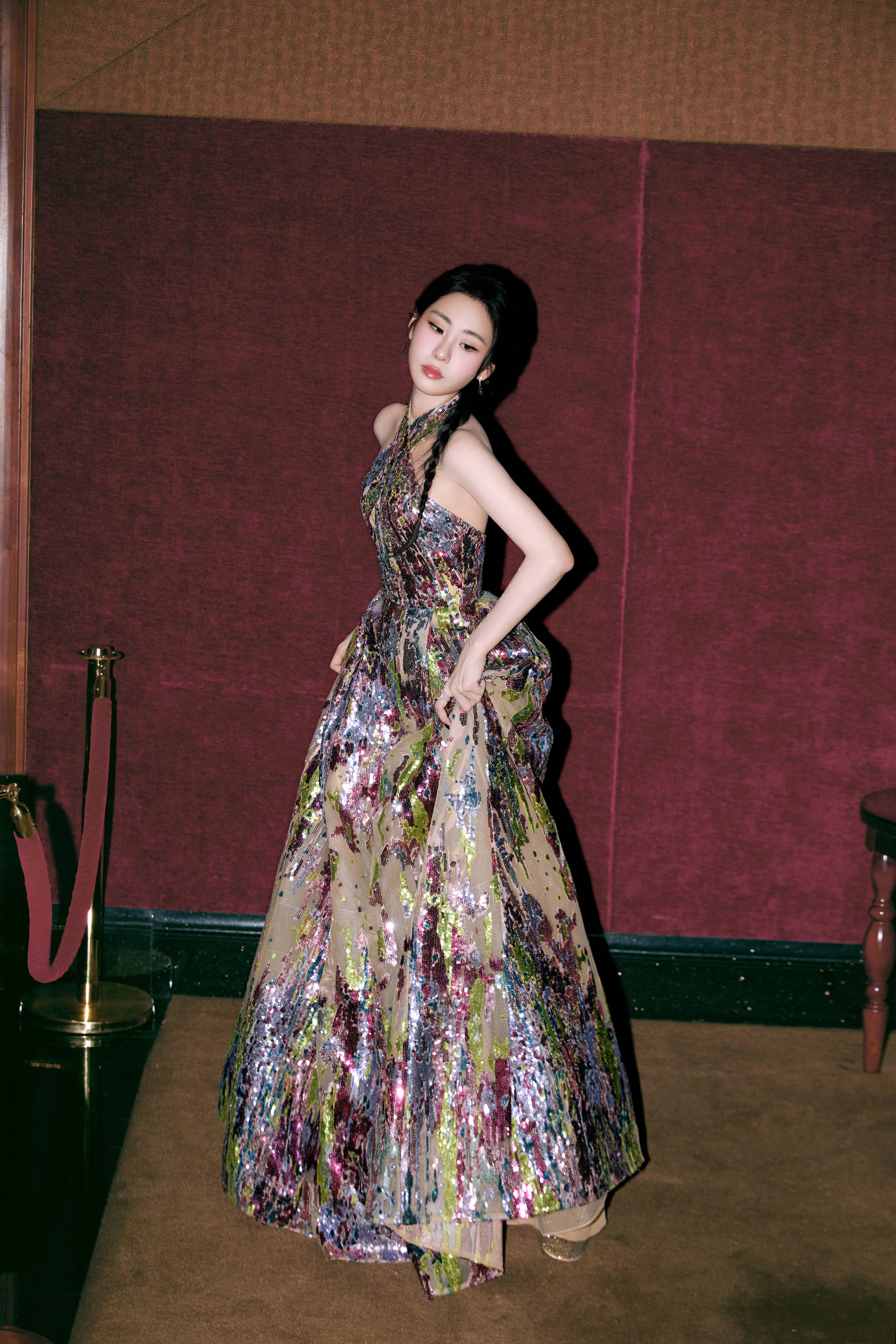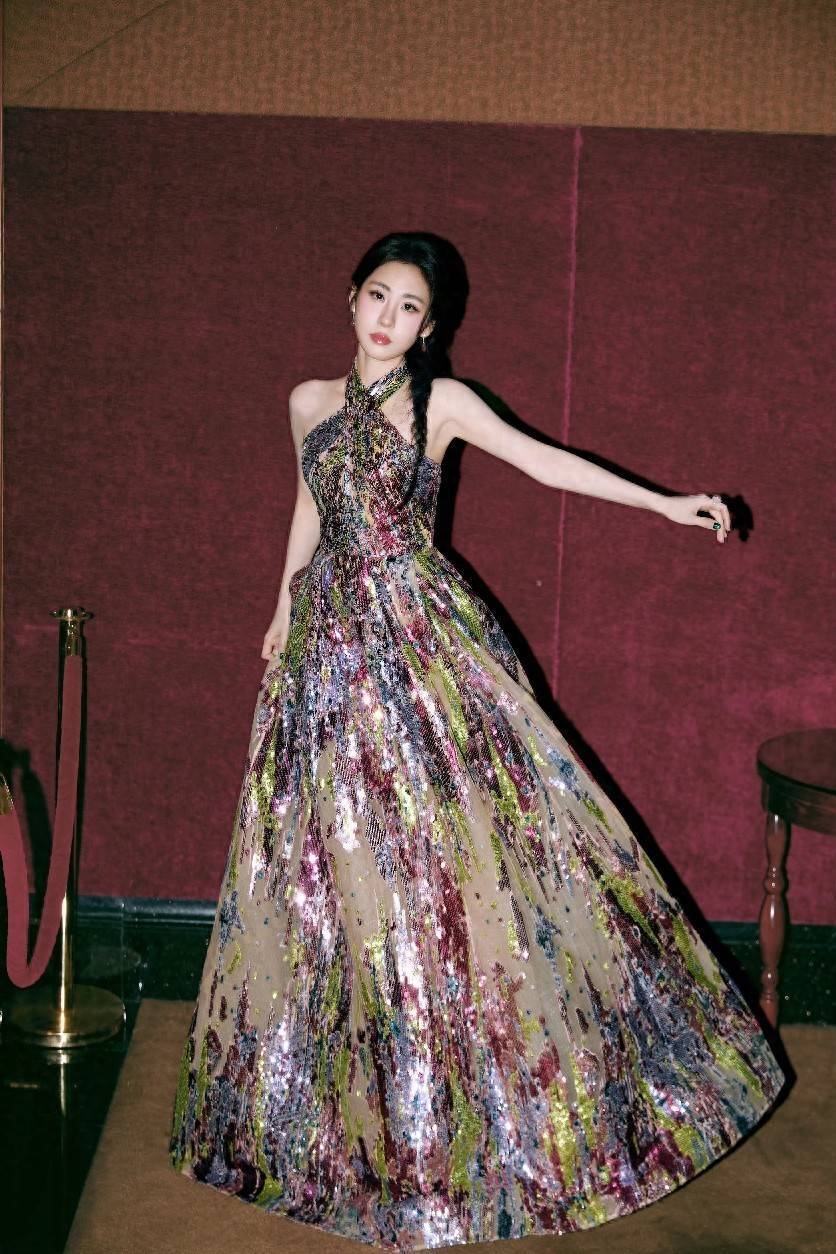 彩色亮片挂脖礼服,是艺术与闪耀的时尚碰撞。