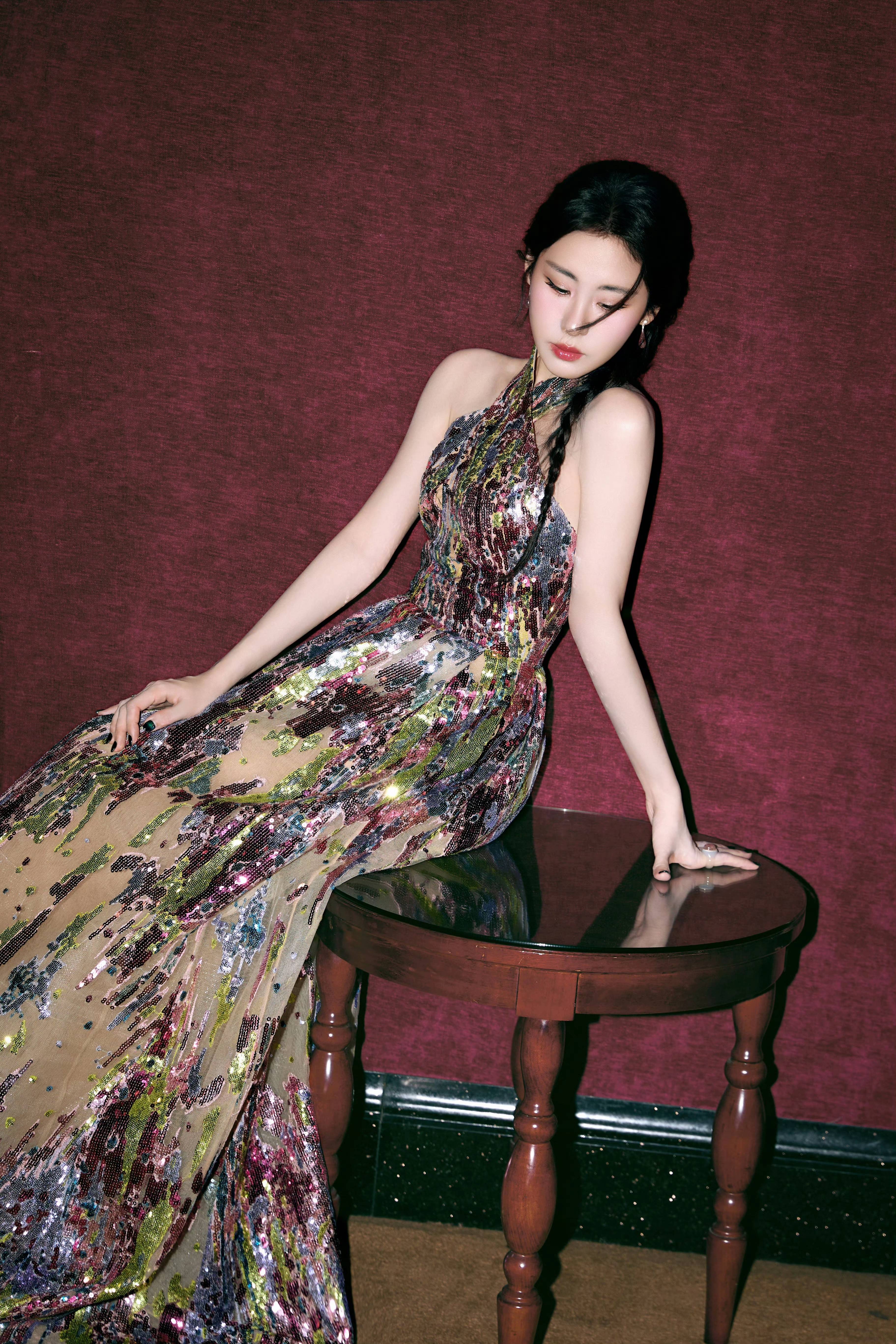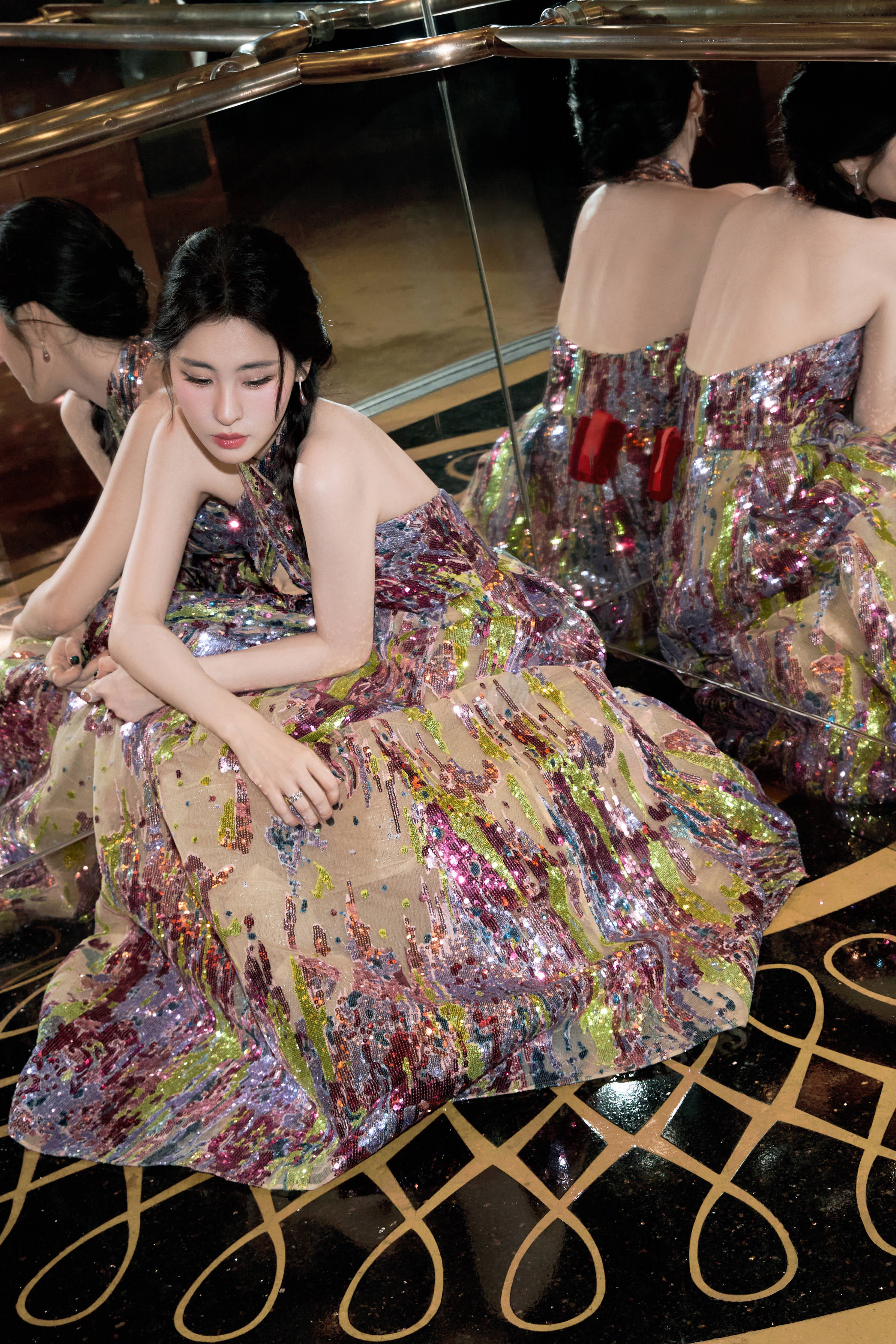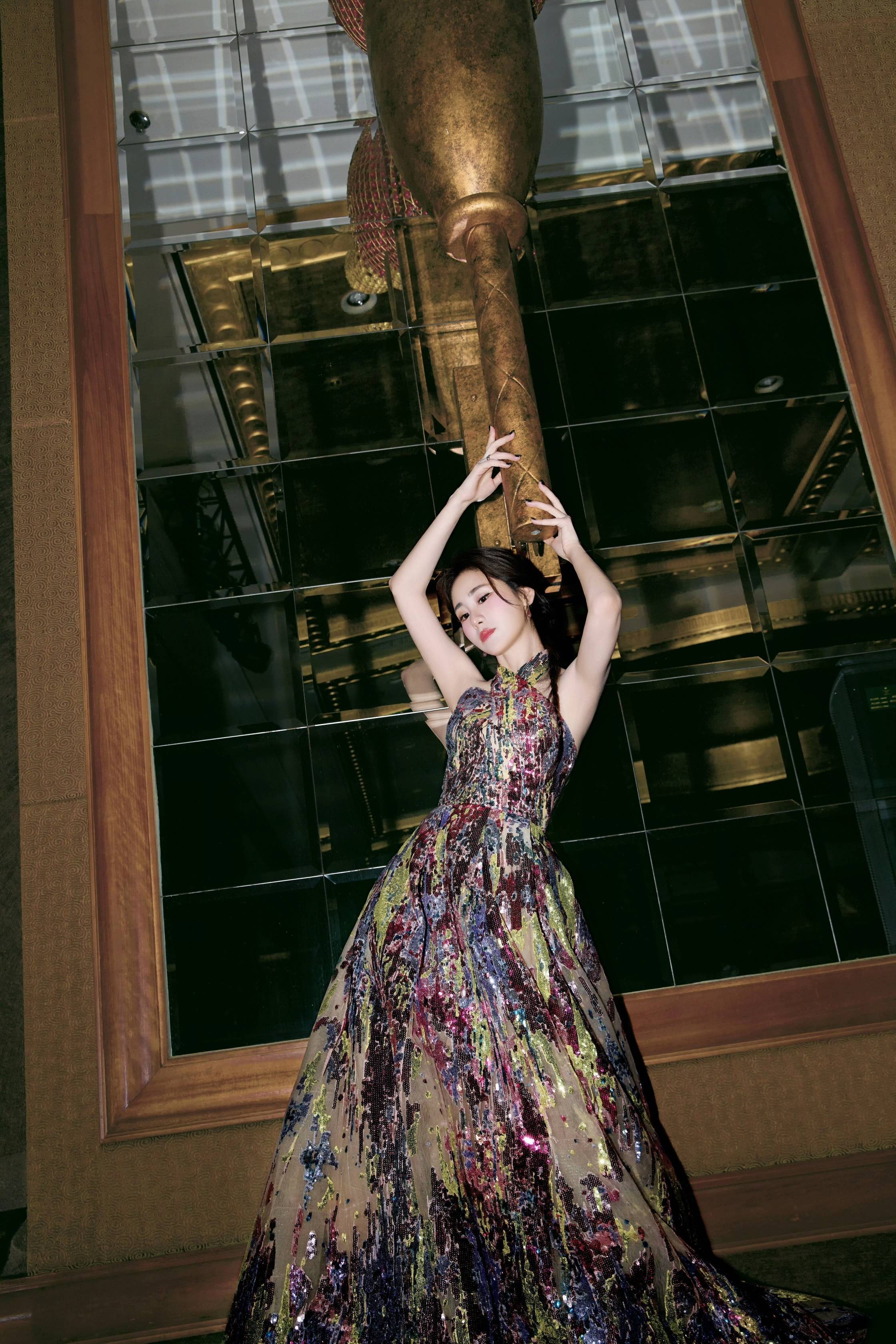 彩色亮片挂脖礼服,是艺术与闪耀的时尚碰撞。
